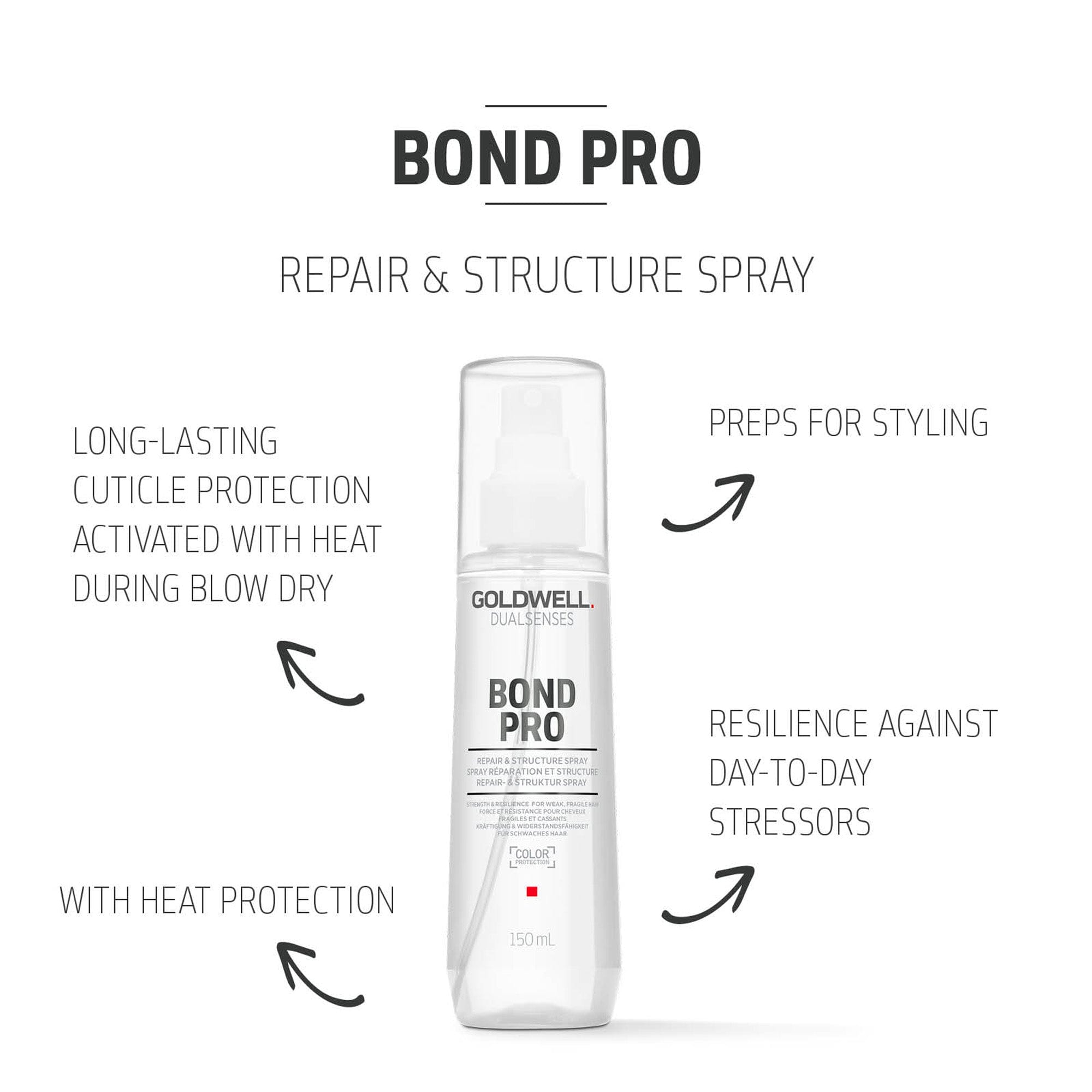 Goldwell Dualsenses Bond Pro Repair & Structure Spray 150ml is a retail haircare product that strengthens weak or fragile hair, whether from everyday wear and tear or from damage caused by mechanical and chemical stresses.