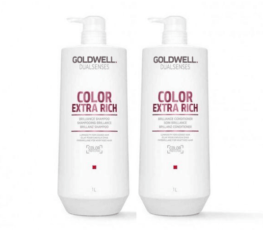 Goldwell Dualsenses Color Extra Rich 1 Litre Shampoo and Conditioner Bundle is a professional haircare set that provides rich color protection and nourishment for dry, damaged, or thick hair.
