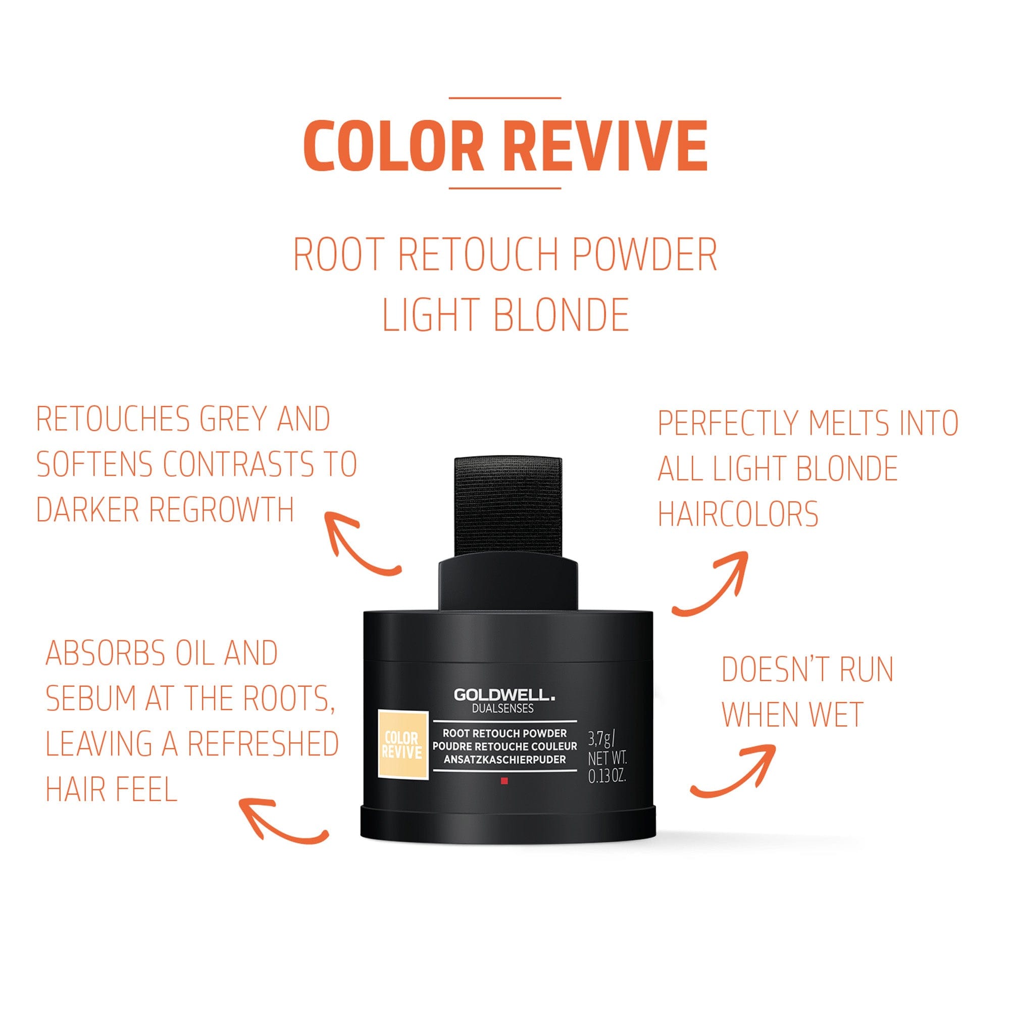 Goldwell Dualsenses Color Revive Root Retouch Powder – Light Blonde 3.7g is an instant coverage solution for root regrowth and grey hair in-between two colorings.