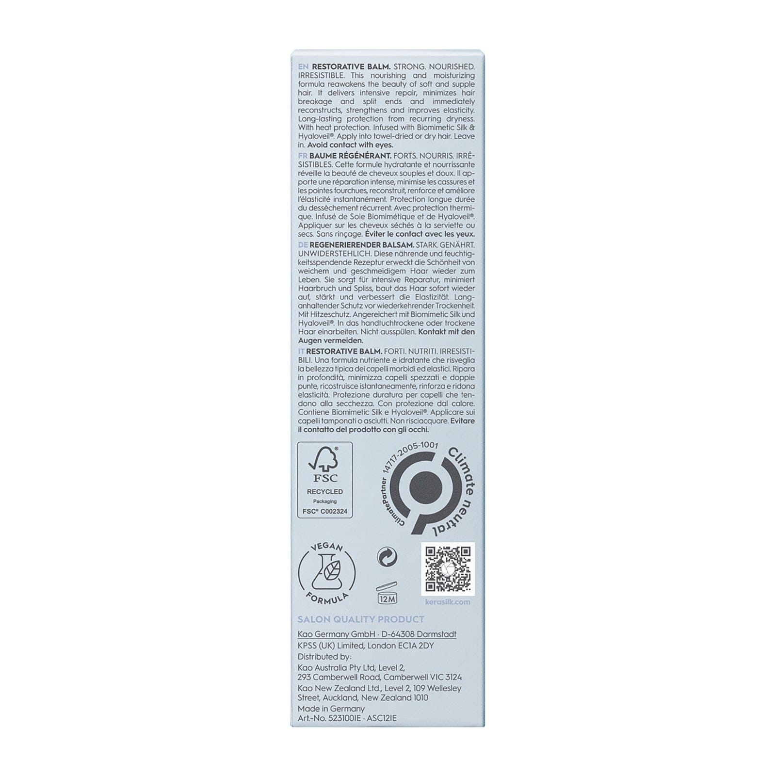 Kerasilk Restorative Balm: Intense hydration, damage repair, frizz control, heat protection. Ideal for revitalizing and restoring dry, damaged hair. Suitable for all hair types.