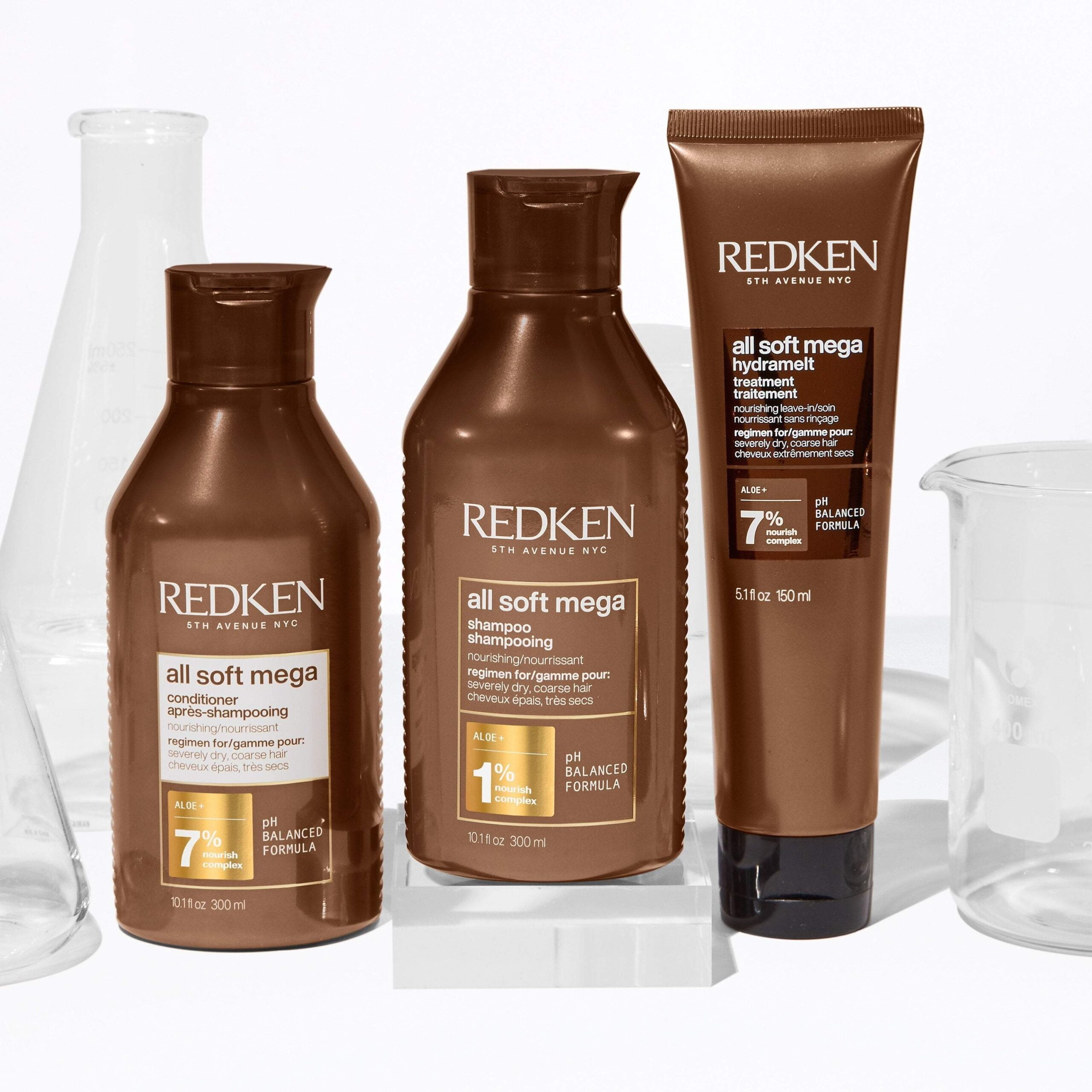 Redken All Soft Mega Shampoo nourishes and hydrates dry hair, infused with Aloe Vera for ultimate moisture. Perfect for medium to coarse hair types.