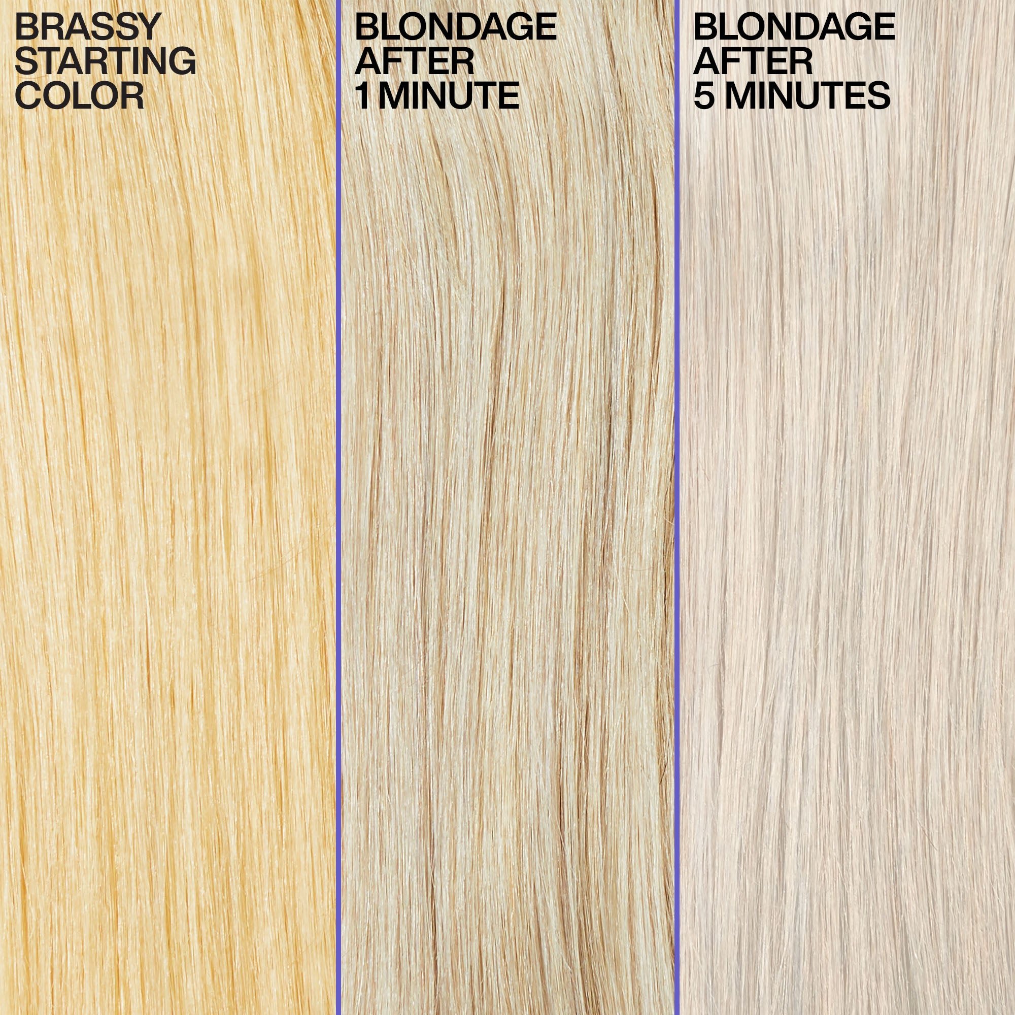 Pure violet (purple) pigments remove unwanted brassiness to leave your blonde hair colour cool and bright.
