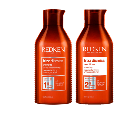 The Redken Frizz Dismiss Shampoo and Conditioner 500ml Bundle includes a sulfate and sodium chloride-free anti-frizz shampoo and conditioner formulated with Redken’s Smoothing Complex featuring sustainably sourced Babassu oil to tame frizzy hair, increase smoothness, and enhance shine.